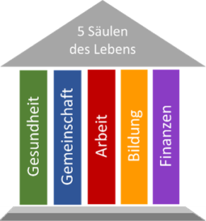 Der:Die Klient:in soll eine Einschätzung darüber abgeben, wie die fünf Säulen im eigenen Leben gefüllt sind: